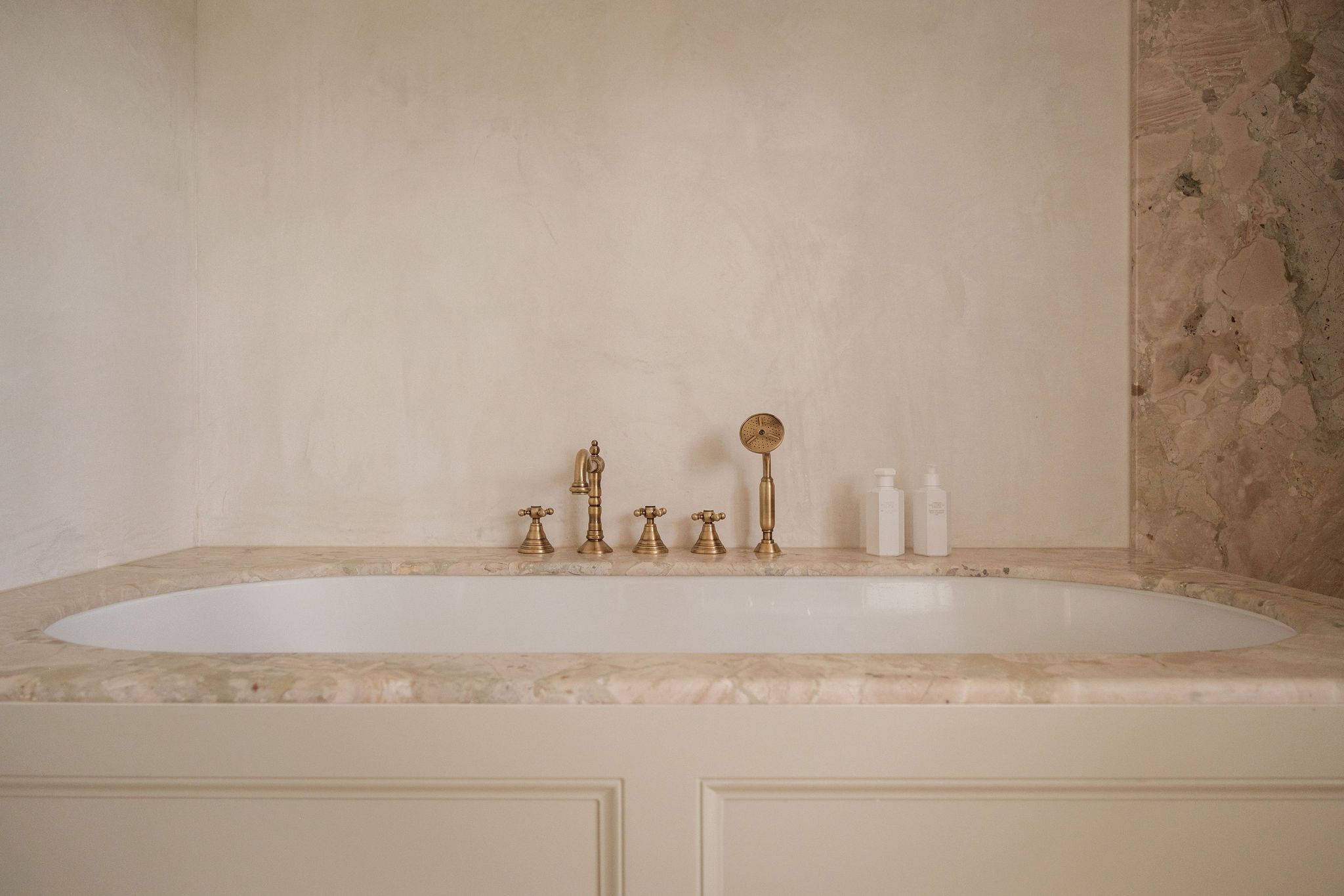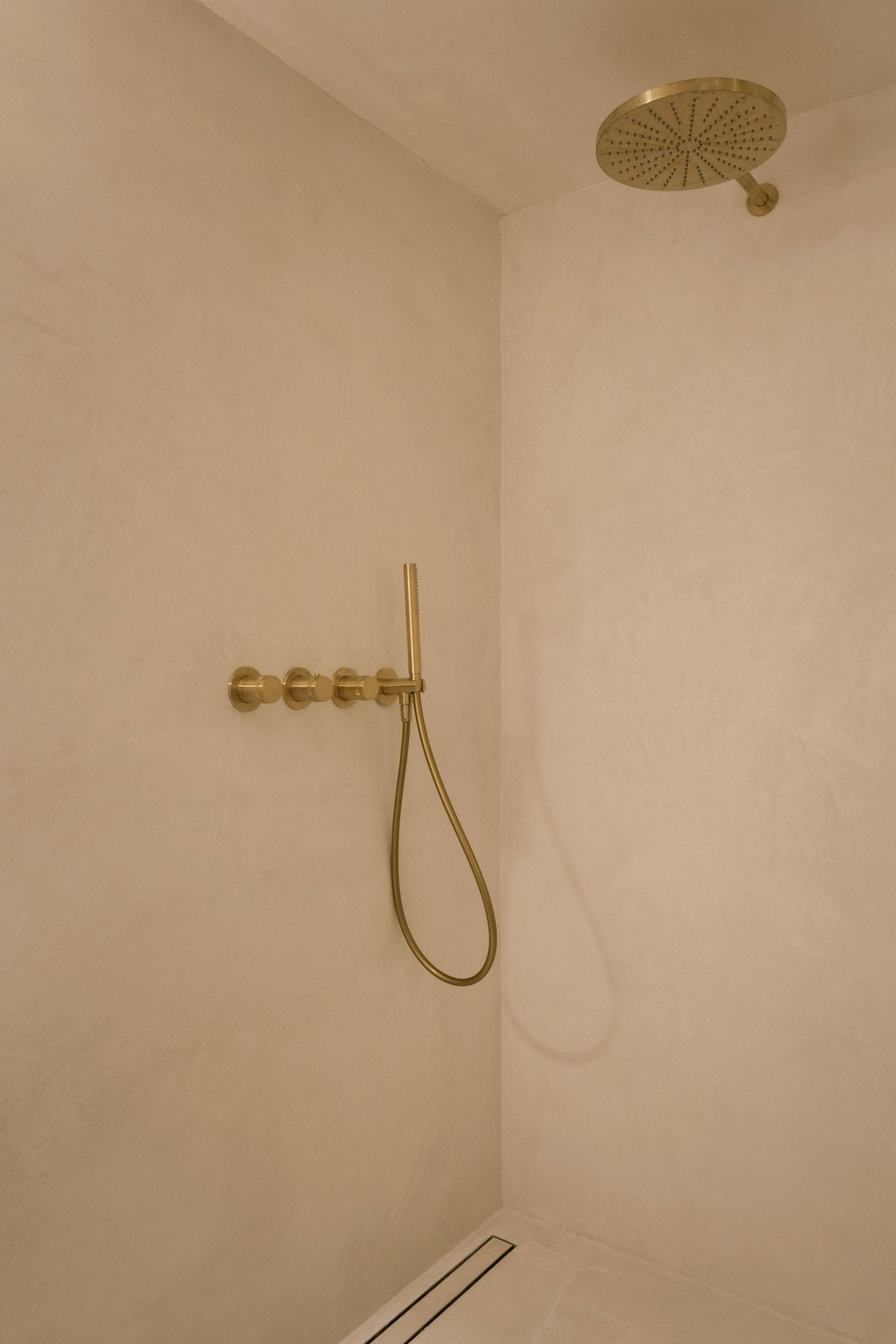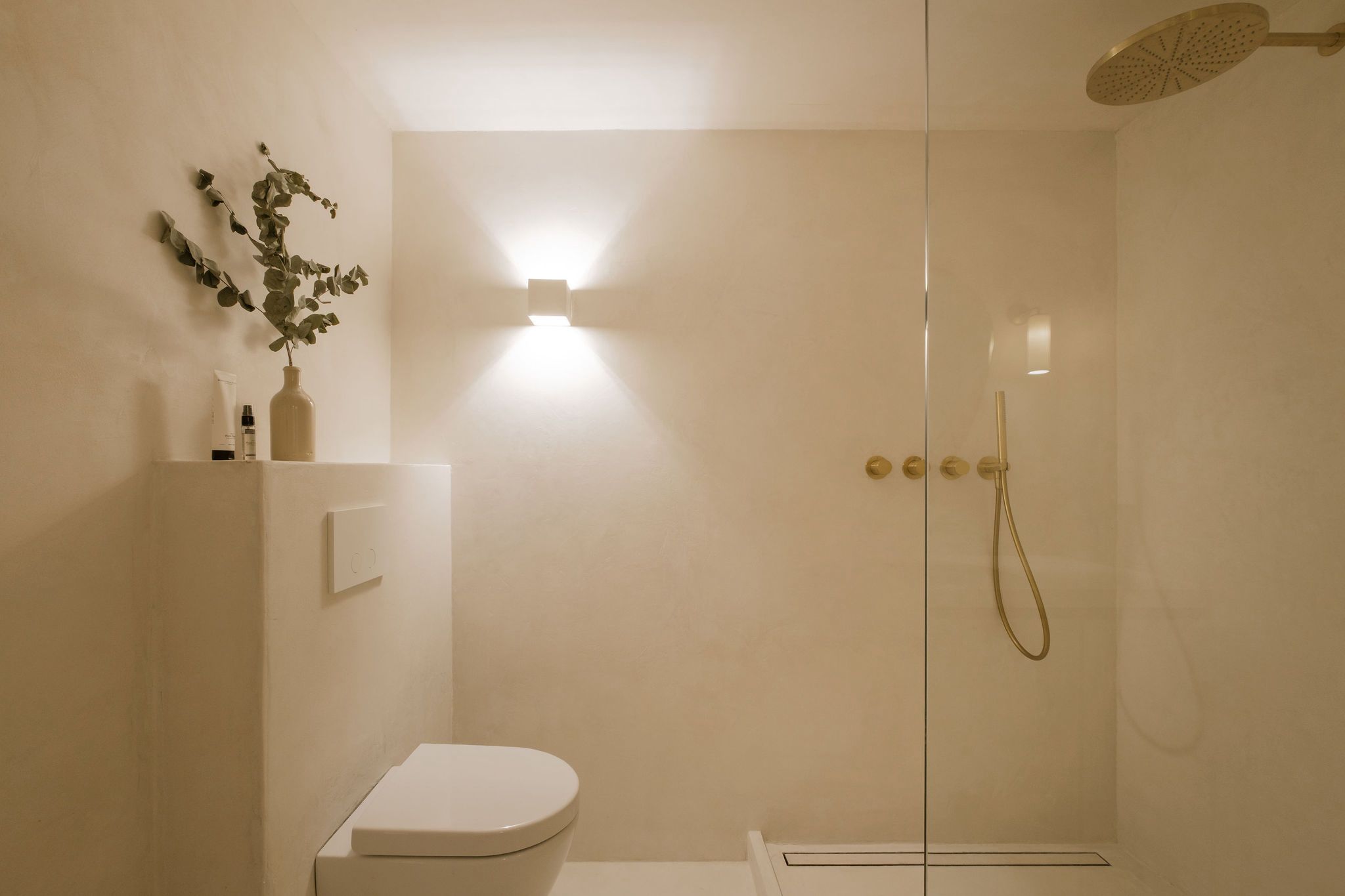 badkamer met microcement wanden en een gietvloer in de badkamer